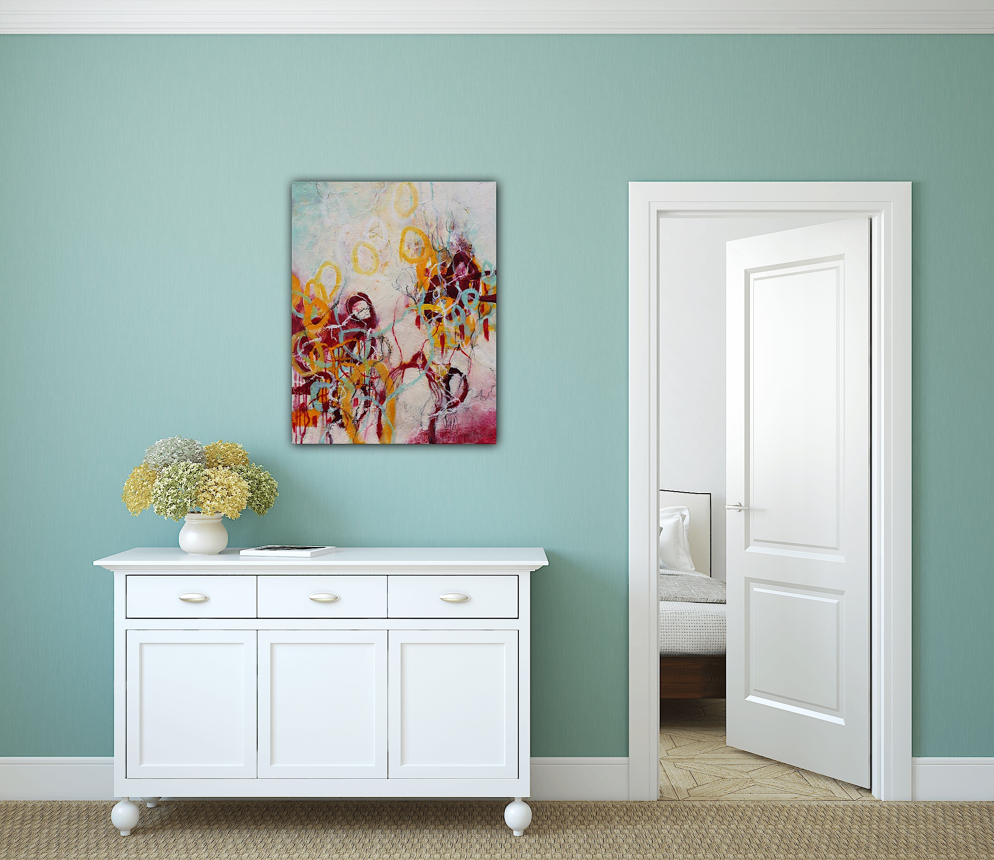 Gerne gestalte ich für Sie ein entsprechendes Kunstwerk. Dazu besprechen wir gemeinsam welches Format sich für den zukünftigen Platz des Bildes eignet, welche Farben und Materialien zum Einsatz gelangen und wie der abstrakte Malstil sein wird. Damit das Bild später gut zur Geltung kommt, beziehe ich die vorhandenen Farben im Raum, die Raumsituation und die Stimmung beim Entstehen der neuen Arbeit mit ein.