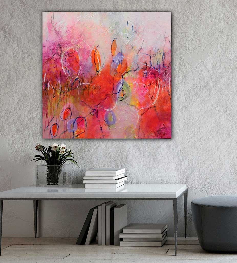 Gerne gestalte ich für Sie ein entsprechendes Kunstwerk. Dazu besprechen wir gemeinsam welches Format sich für den zukünftigen Platz des Bildes eignet, welche Farben und Materialien zum Einsatz gelangen und wie der abstrakte Malstil sein wird. Damit das Bild später gut zur Geltung kommt, beziehe ich die vorhandenen Farben im Raum, die Raumsituation und die Stimmung beim Entstehen der neuen Arbeit mit ein.